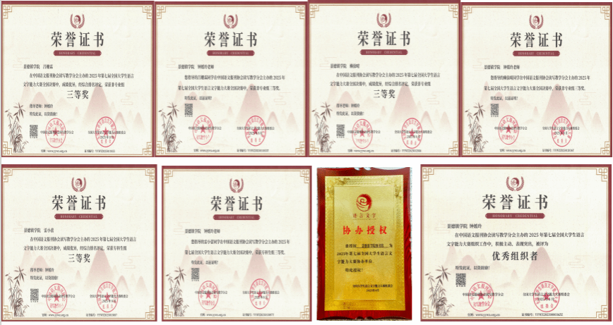 (本网讯:景图轩)开学以来,校图书馆陆续收到2025年第七届全国大学生语言文字能力(非专业组)大赛师生获奖证书。校图书馆首次协办全国大学生语言文字能力(非专业组)大赛,信息服务部主任钟媛玲副教授指导2024级小学教育1班吕姗霖、2024级小学教育(专升本)班赖徐晴两位同学获得国家级三等奖,指导2023级电子信息工程1班雷小蕾同学获得专科生组国家级三等奖。 本届大赛由中国语文报刊协会读写教学分会主办,设有专业组、非专业组和专科生组三个组别,...