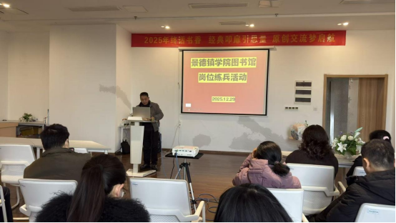 (本网讯:文/邱战宏,图/张弘)为强化馆员业务能力,优化图书馆馆藏资源管理,提升图书馆整体服务效能,12月29日下午,景德镇学院图书馆以“以赛促学、以练促干”为理念,开展了一场别开生面的图书搬运整理岗位练兵活动。图书馆全体馆员凝心聚力、分工协作,在书香氤氲中上演了一场兼具专业性与协作力的“实战练兵”。读者服务部主任邱战宏主持了本次活动。