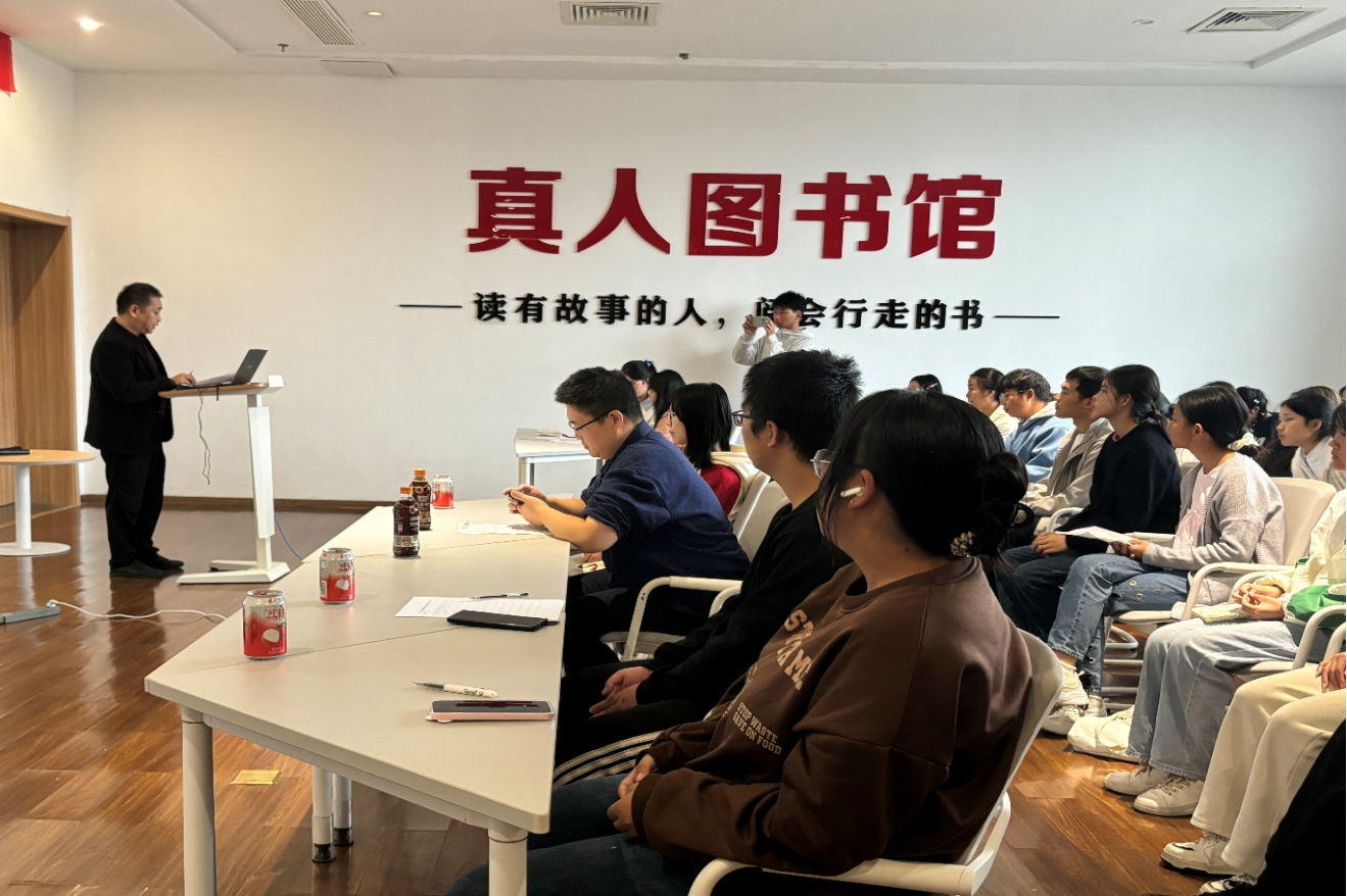(本网讯:文/钟媛玲、叶竞青 图/刘筱艺、冷雅欣)为丰富校园文化生活,搭建书友交流平台,引导师生在阅读中汲取智慧、涵养心灵,2025年11月8日14:30,读者协会在图书馆二楼真人图书馆举办“经典藏青春密语 岁月启今日新程”为题的读书分享会。图书馆副馆长陈晖、与信息服务部副主任徐绍昆受邀来到现场做嘉宾,与全校阅读爱好者们齐聚一堂,以书会友,畅谈感悟。