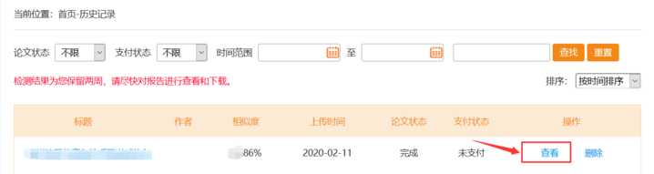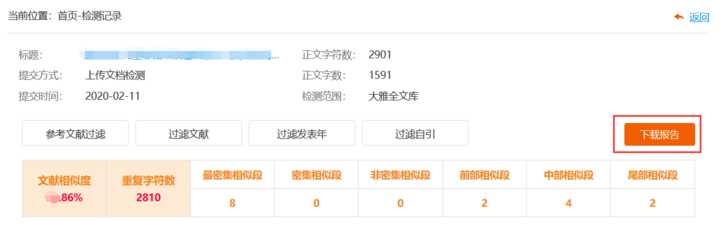 上传需要检测的文献,并通过“使用”免费权限的方式查看检测报告。